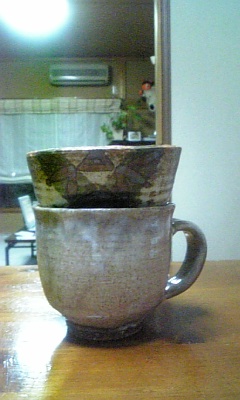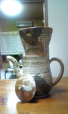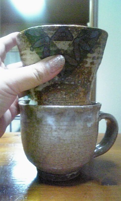 こんばんはvv 昨日は、コーヒーとか紅茶のお話しを書きましたが、今日はそのコーヒーを入れる際のちょっとした不便を書きます。 数年前に那須高原に行った時、ぶらっと立ち寄った民家風の喫茶店に幾つかの陶芸作品が店頭販売されてました。そしてずっと探していた物がそこにあったんです。 コーヒーのグラスポットと言えば殆どがガラス製品、フィルターはプラスチックですが、陶器で出来ているのは無いのかな?っていつも思っていたんです。 私は和食器が大好きなんですね。 だから家にある全ては何処かしらの陶芸作品の和食器なんです。 で、見つけたコーヒーポットとフィルターが一緒になっていた陶芸作品がこちらです。 フィルターを取るって蓋も出来ます。 相棒とコーヒー飲む時や、友人に入れてあげる時は良いのですが、、 困った事に自分だけ飲む時に困るんです。 普通はコーヒーカップの上にフィルターを乗せてペーパードリップ方式で入れれば簡単なんですが、 左の写真が理想なんですが、手を離すと右の写真のようにフィルターがカップの中にズボッと落ちてしまいます(笑) だから面倒でも、コーヒーポットとセットで使うしか無いんですが、2杯目はぬるいんですよねぇぇ>< ちなみに、今使っているコーヒーカップは北海道の知床窯の粉引カップです。 使い込むうちに味が出てきて中々飽きの来ない作品でした。 最後に、昨夜「細雪」をUPしたんですが、、なんか引っかかるところがあって、それが何かわからなかったんですが、朝、お風呂に入っている時に、引っかかりがわかり、訂正しておきました。 文中に、八戒が「明らかに体脂肪率が300%超えていそうな身体でも?」という箇所がありましたが、、 体脂肪が300%は有り得んだろう!50%に訂正しておきました。 コレステロールと体脂肪、ごっちゃになってました(すまんとです) 拍手レス 11日 洸聖さん いらっしゃいませぇぇv 「細雪」読んで頂いてありがとうございます(ペコリ) 最初は「歩く生殖器」と書いたのですが、悟浄の場合は種族保存本能は無いような気がしたので、そのまま「歩く性器」に書き換えました。 自分でもこの方が悟浄にピッタシと妙に納得(笑) 例え服を着ていても歩いているだけで、猥褻罪で逮捕されそうなほど男性ホルモンがムンムン出てそうで好きv 笑かすつもりで書いたわけじゃないんですが、、笑って頂いて私も嬉しかった(笑) 次回は悟浄の禁欲生活です。楽しんで下さいませvv 11日 WIREDさん いらっしゃいませ~~~v 「細雪」読んで頂いてありがとうございます(ペコリ) 人は外見じゃ無いとわかっていても、もし自分の彼氏や彼女が容姿端麗だったら、八戒さんの質問は答えづらいと思いました。どんな言い訳しても嘘にしか聞こえないもの(笑) やはり今後の悟浄の悲惨な光景が浮かびましたか。。。。 お察しの通り悲惨です。我慢大会です。 一応私は女なので///、男性の欲求不満の辛さは計り知れないところがありますので、しっかりリサーチして次回に挑みたいと思います。 ウチの会社は歩く性器がゴロゴロしてますので、リサーチ結果を楽しみにしていて下さいませvv 11日 ありさん いらっしゃいまほぉぉぉv 「細雪」読んで頂いてありがとうございます(ペコリ) 初回は悟浄と三蔵の苦悩の始まりの序章ですので、2話は早めにUPしますねv 久し振りのバカップルは書いてて楽しいです。 決算で数字ばかりみているから、脳みそが普段より腐って危ないです。 でも、下品にならないように心がけますが、、ちょっとお下劣になっても片目瞑っててねv 私も連休明けに御報告がありますから、メールしますねv メルフォレス 10日 海月さん いらっしゃいませで~す♪ おぉ「赤い有刺鉄線」イッキ読みですか! お疲れ様でした(ペコリ) でも、私もイッキ読み派なので、海月さんがおっしゃる事はすごく良くわかりますよ(笑) 特にシリアスだってわかっている物は読む方にも気力が必要ですよね。 本当は「赤い有刺鉄線」のラストがコメディ調だって事を書きたかったんですが、書くとネタばらしになってしまうので皆様には内緒にしていたんですが、ラストで気が抜けて損した方もいたんじゃないでしょうか(笑) WIREDさんからリクを頂いた時にものすごくシリアスな内容だったにも係わらず何故かラストのサンドイッチが浮かんで来たんです(笑) なので、ラストがあんなんだから、其処に行き着くまで、いかにドロドロにしようかが一番難しかったですね。 本来私は、ゼロか100なので、あんなグルグル思考は苦手なんですよ(笑) 4人のグルグルを書いていたら私までグルグルになって、恋愛の曖昧な気持ちが少しわかりました(笑) 海月さんはピュアな方だと思ってますよ♪ 日記を拝読していてそう思いました。 海月さんのピュアなオーラが私にも影響すれば嬉しいなv よしっ、もっと仲良くして貰おう! と、言うことで宜しくお願いしま~す♪ 10日 吹雪さん いらっしゃいませです♪ ドキドキ、、、吹雪さんの感想が一番ドキドキで