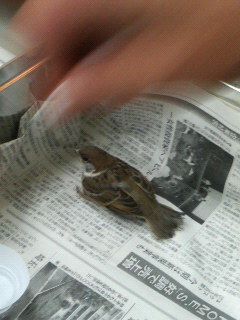 昨日、会社に子雀が迷い込んで来ました。